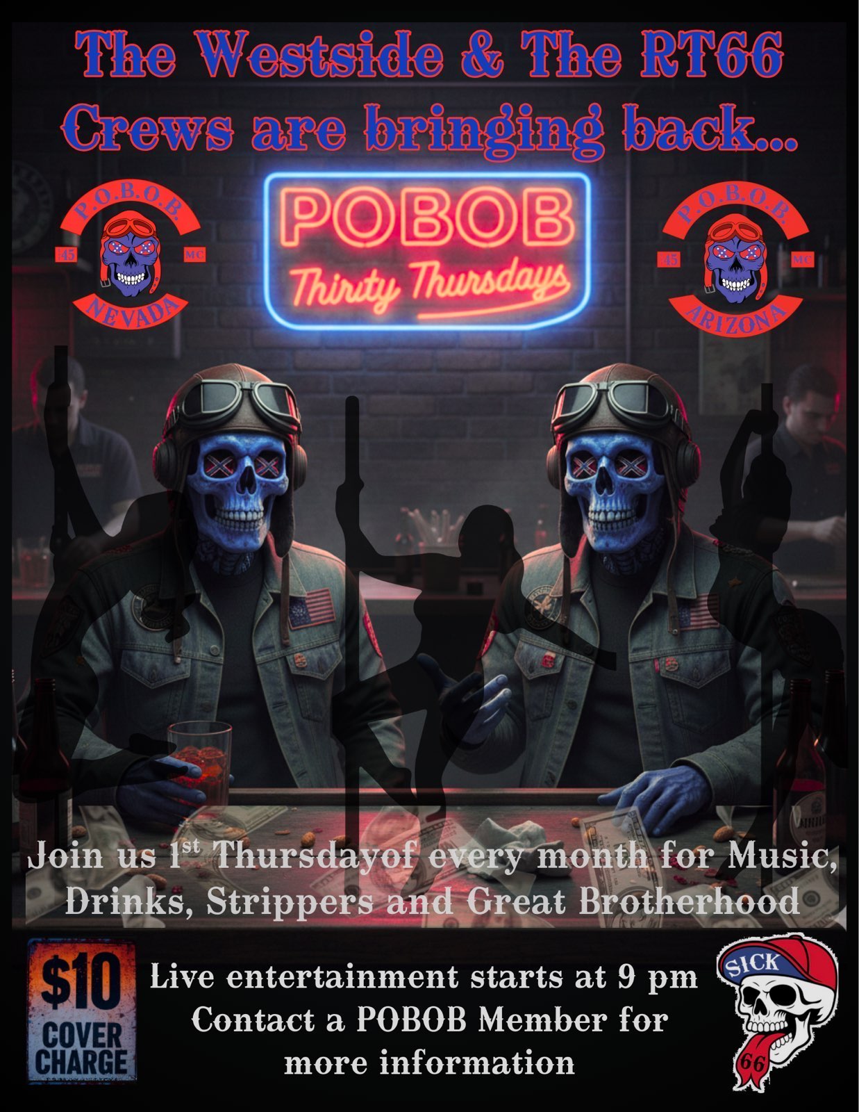 The P.O.B.O.B. name stands for loyalty, respect, and brotherhood — values that run deep within every member and supporter. Over the decades, the club has grown across multiple chapters and states, staying true to its roots: riding hard, standing strong, and honoring those who came before us.
